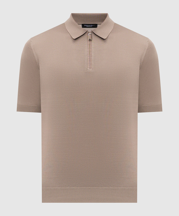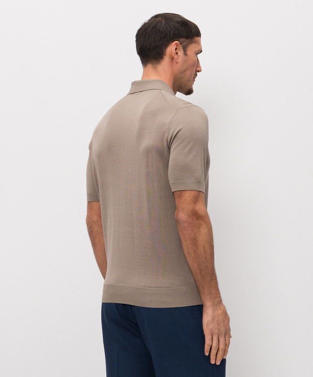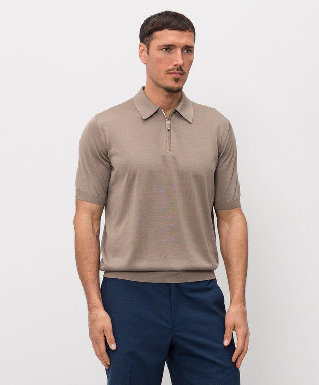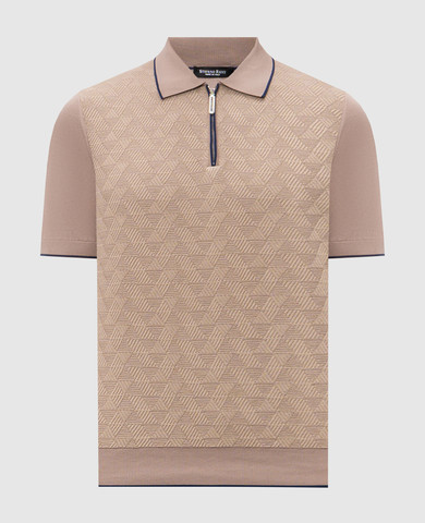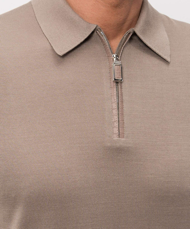 Коричневое поло из шелка с кожей крокодила
