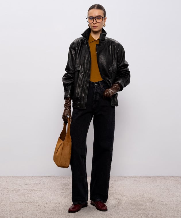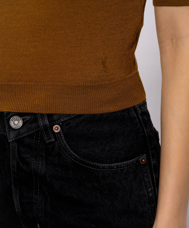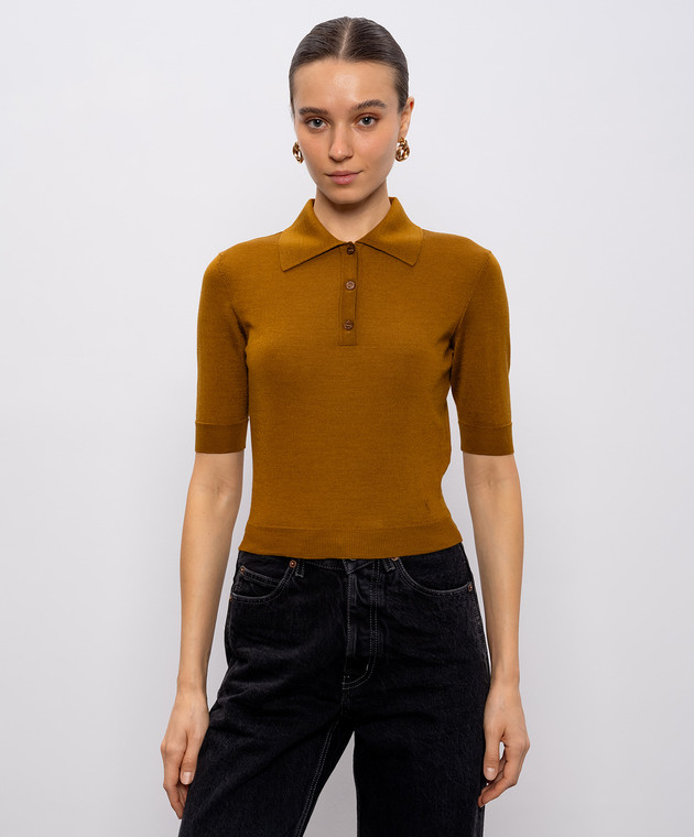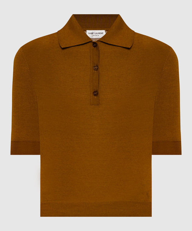 Коричневое поло из шерсти, кашемира и шелка