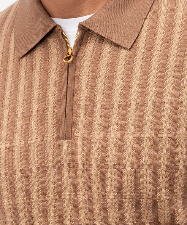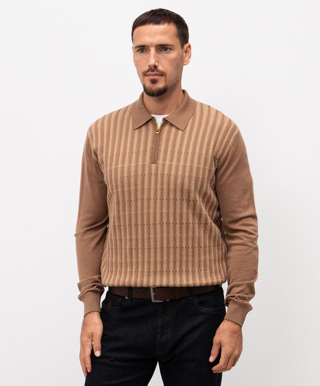 Коричневое поло из шерсти, кашемира и шелка
