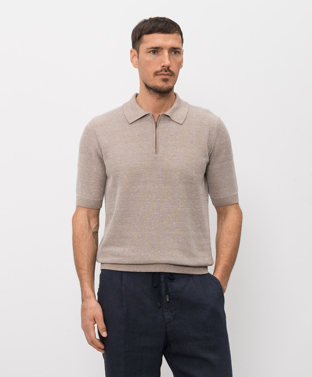 Коричневое поло с леном в узор