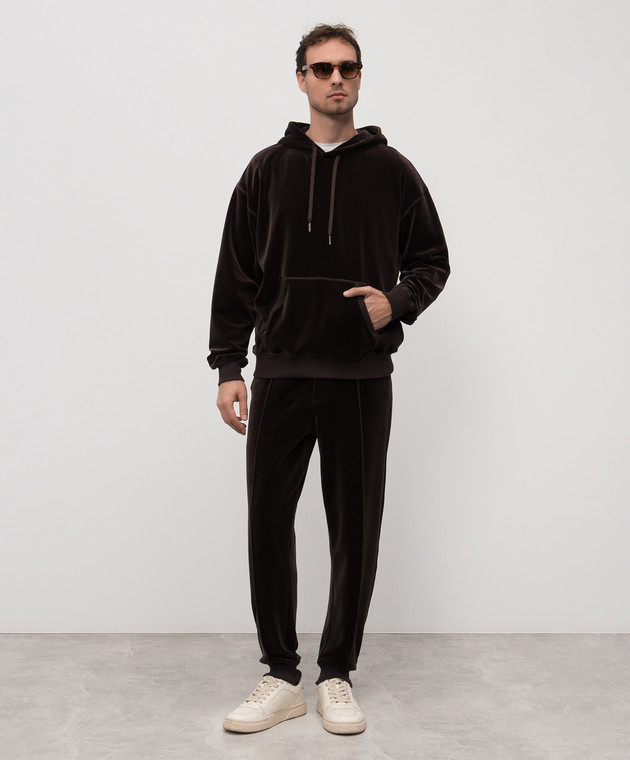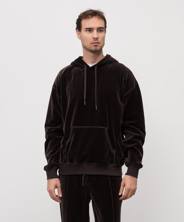 Коричневые бархатные худи с логотипом