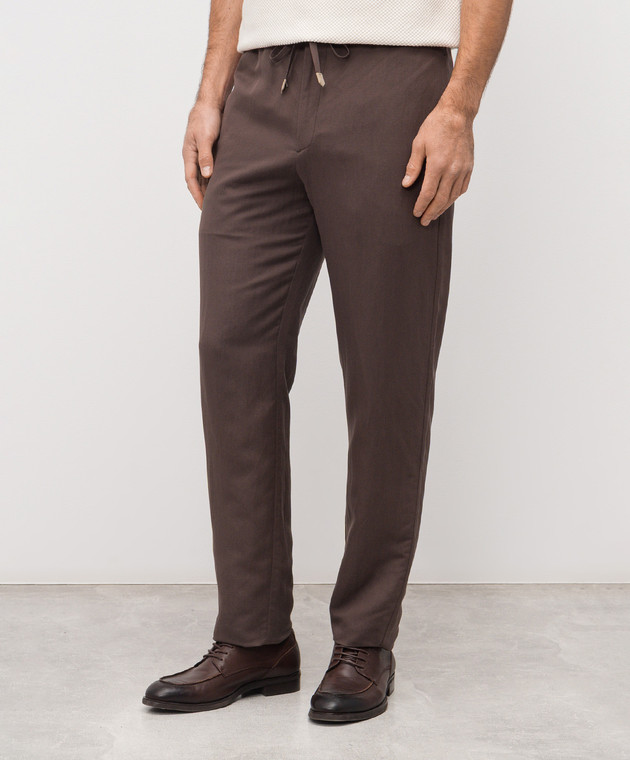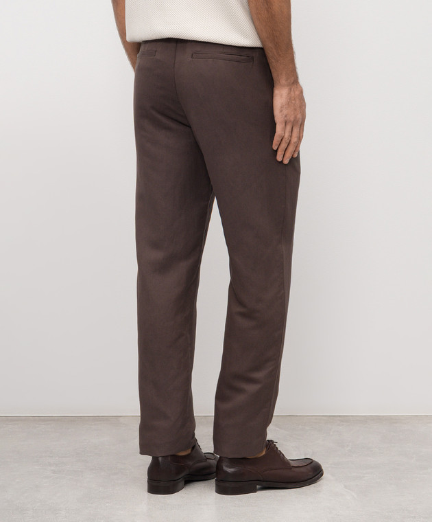Коричневые брюки из льна и шелка