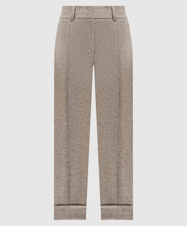 Коричневые брюки из льна с отворотами