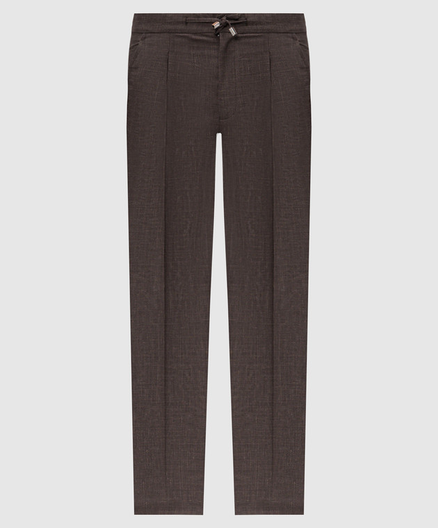 Коричневые брюки из шерсти, шелка и льна