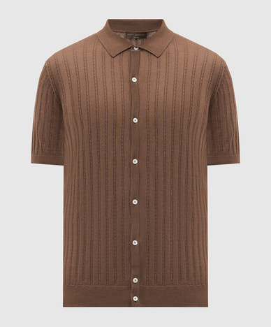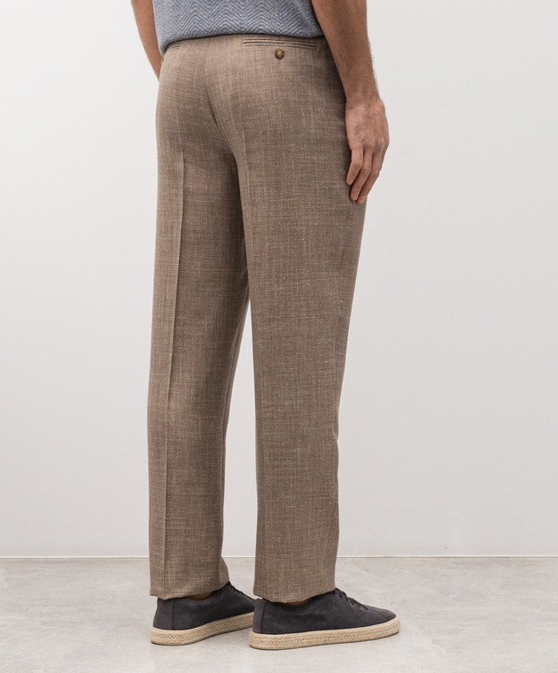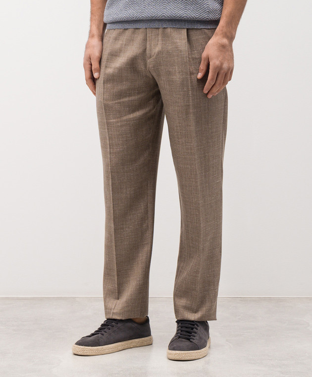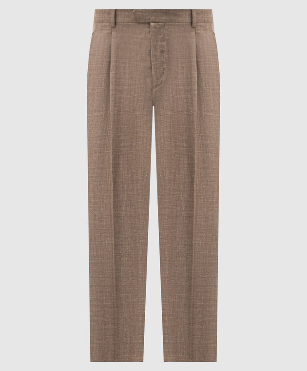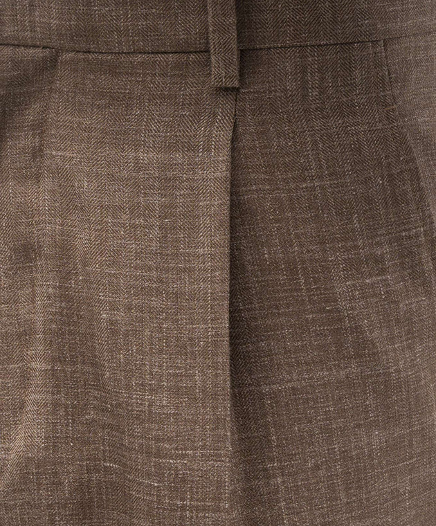 Коричневые брюки из шерсти, шелка и льна в узор