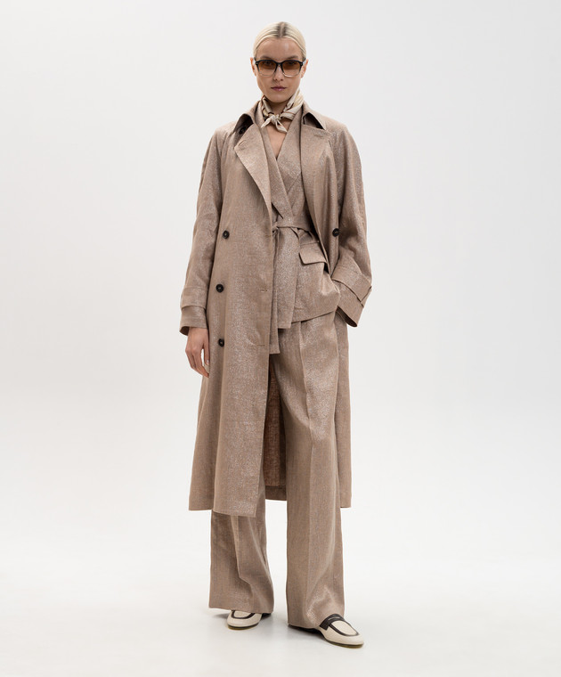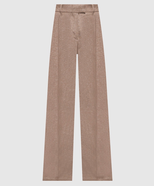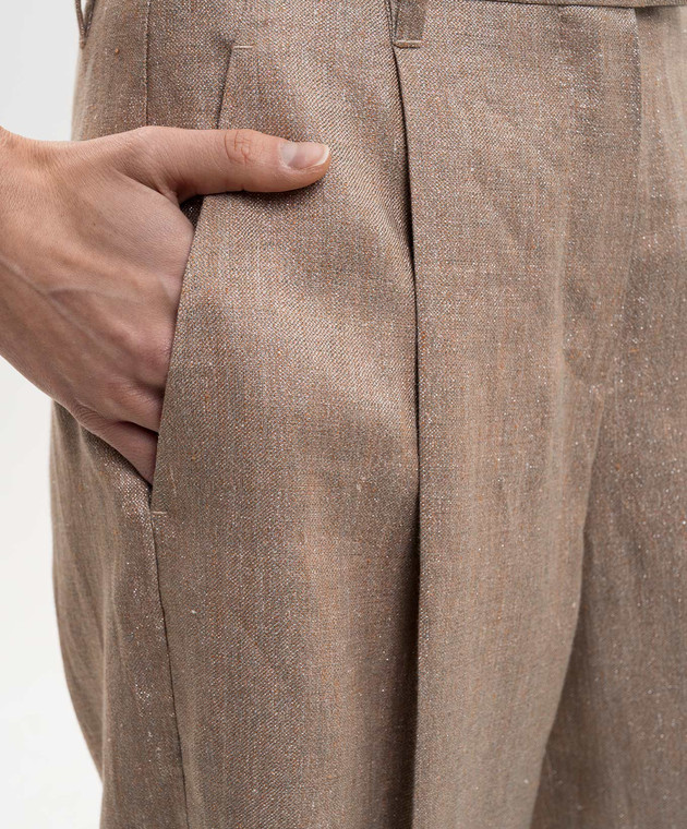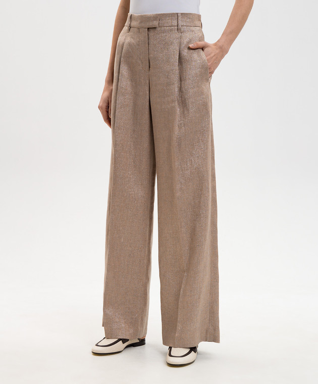 Коричневые брюки с леном с люрексом