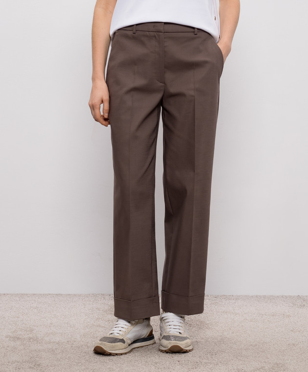 Коричневые брюки с отворотами