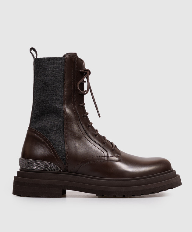 Коричневые комбинированные ботинки с цепочкой мониль