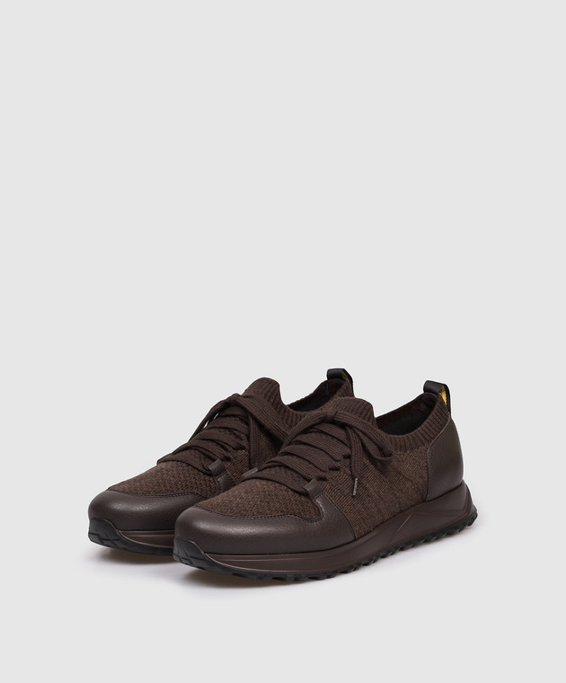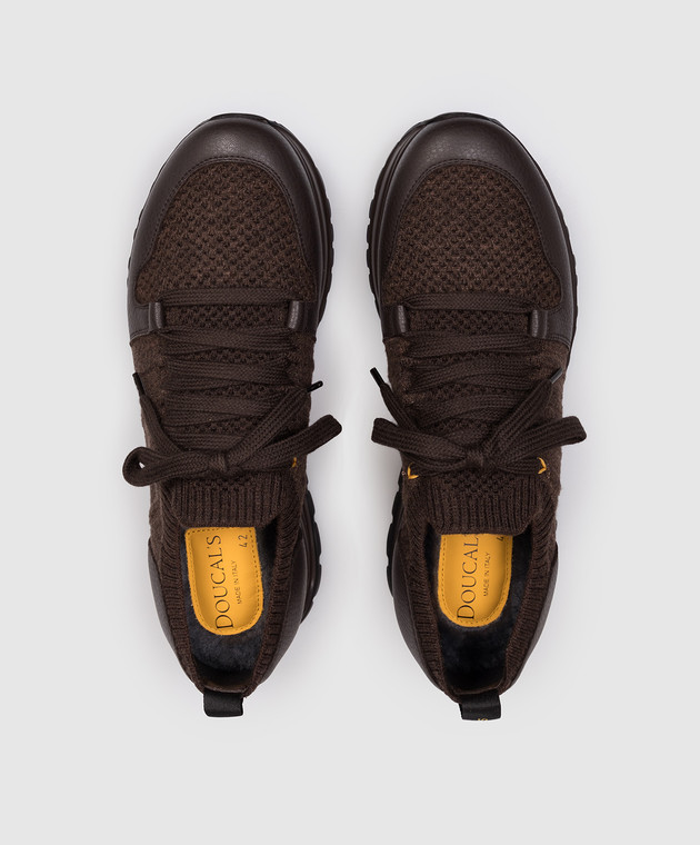 Коричневые комбинированные кроссовки с шерстью