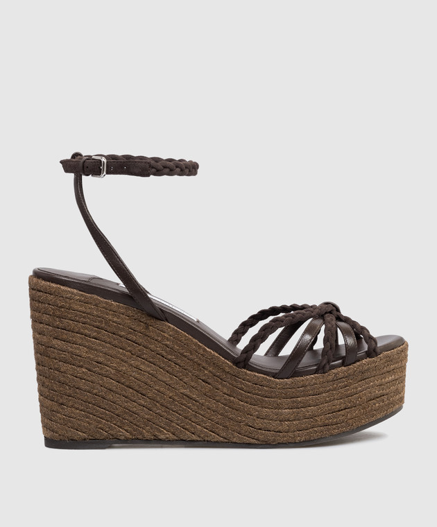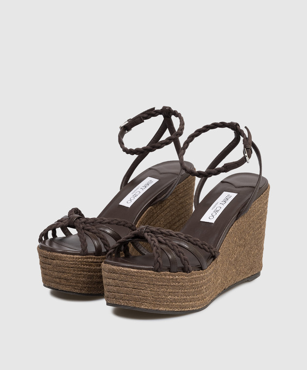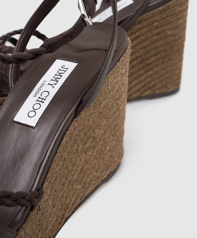 Коричневые кожаные босоножки Nyra на танкетке
