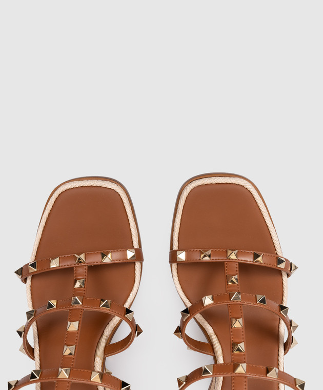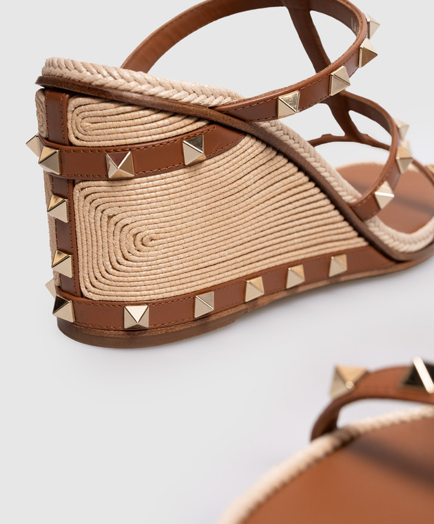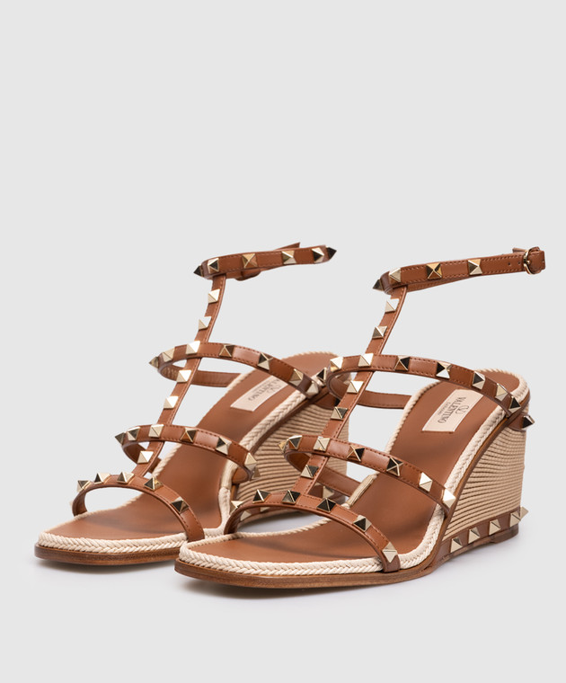 Valentino Коричневые кожаные босоножки Rockstud на танкетке 8W2S0IJ8HJQ
