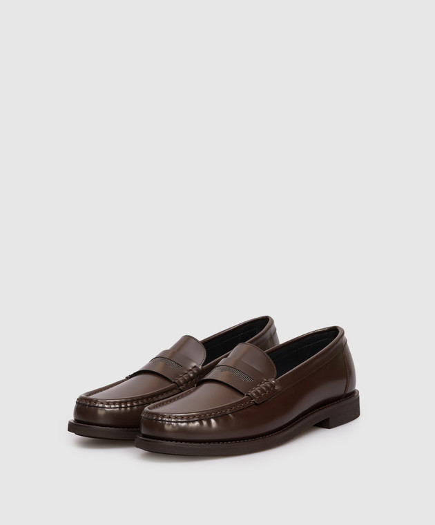Коричневые кожаные глянцевые лоферы