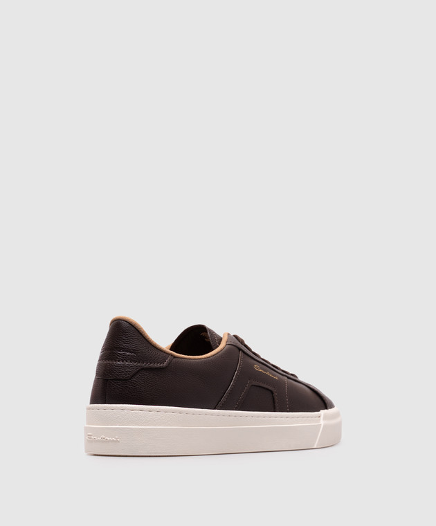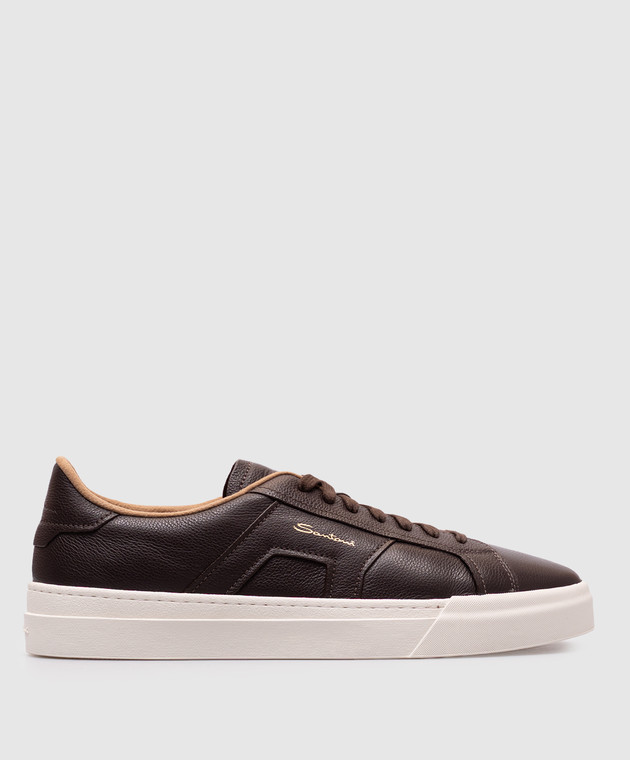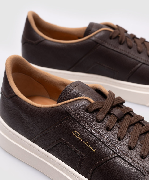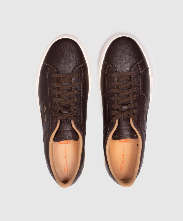 Коричневые кожаные кеды с логотипом