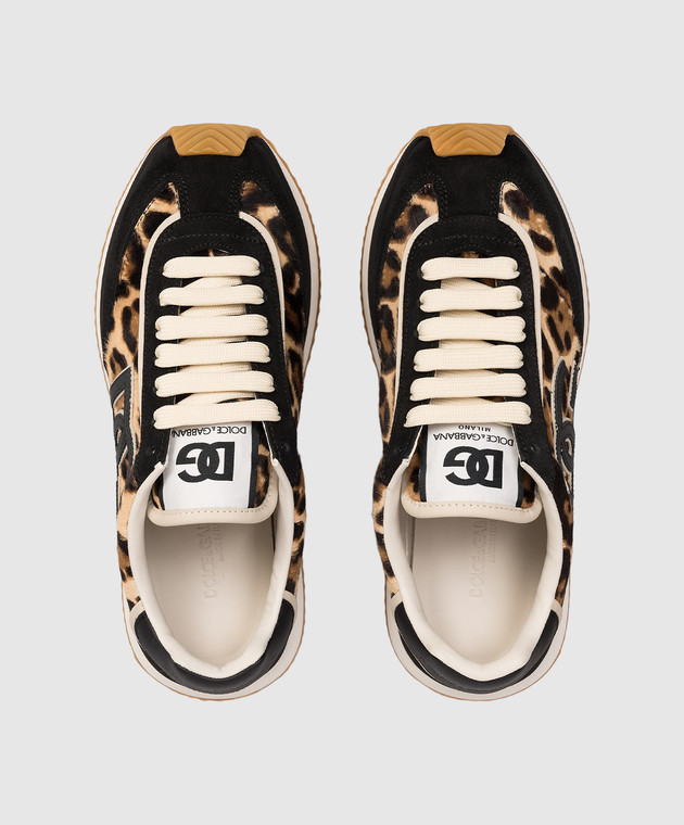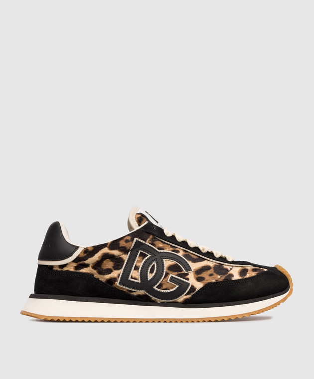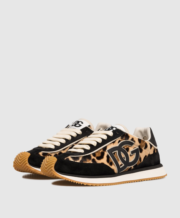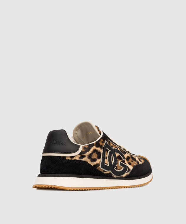 Коричневые кожаные кроссовки DG Cushion в анималистичный принт