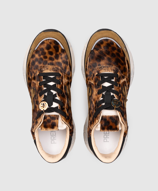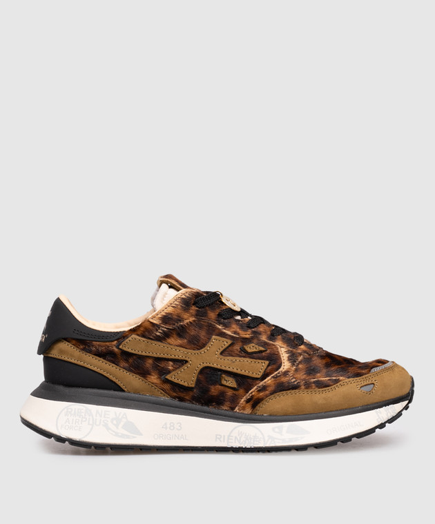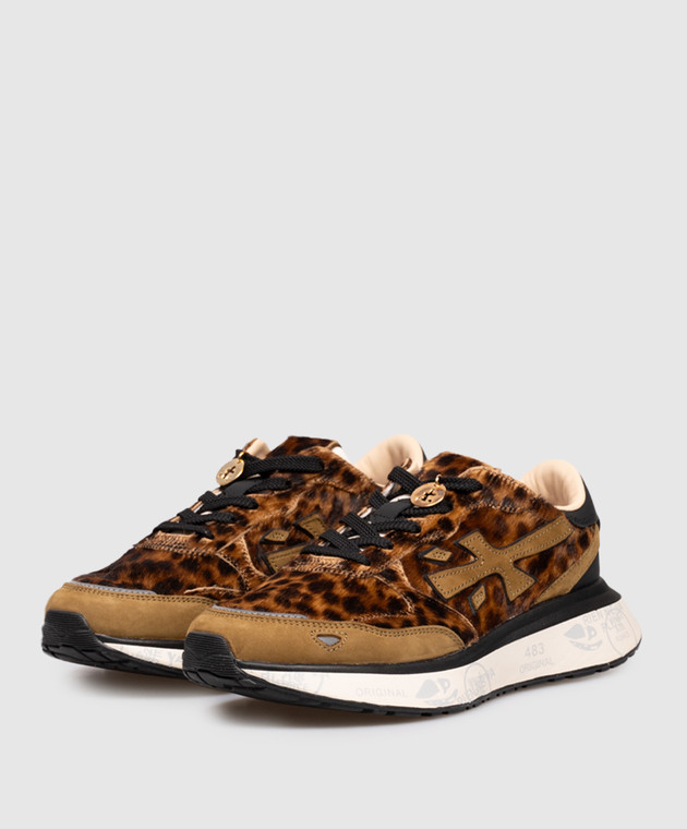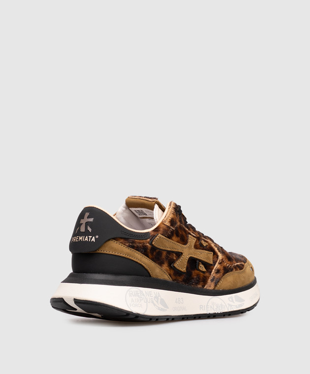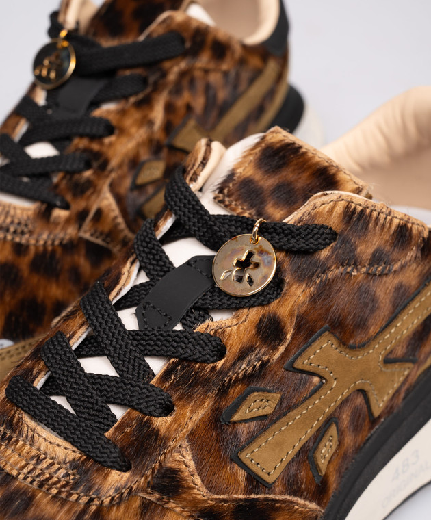 Коричневые кожаные кроссовки LAURYN в анималистичный принт