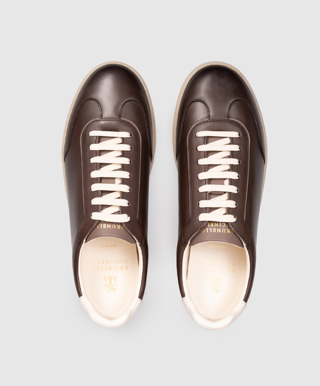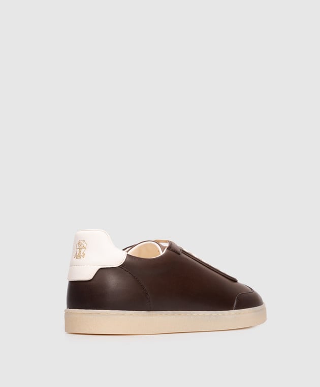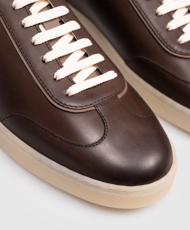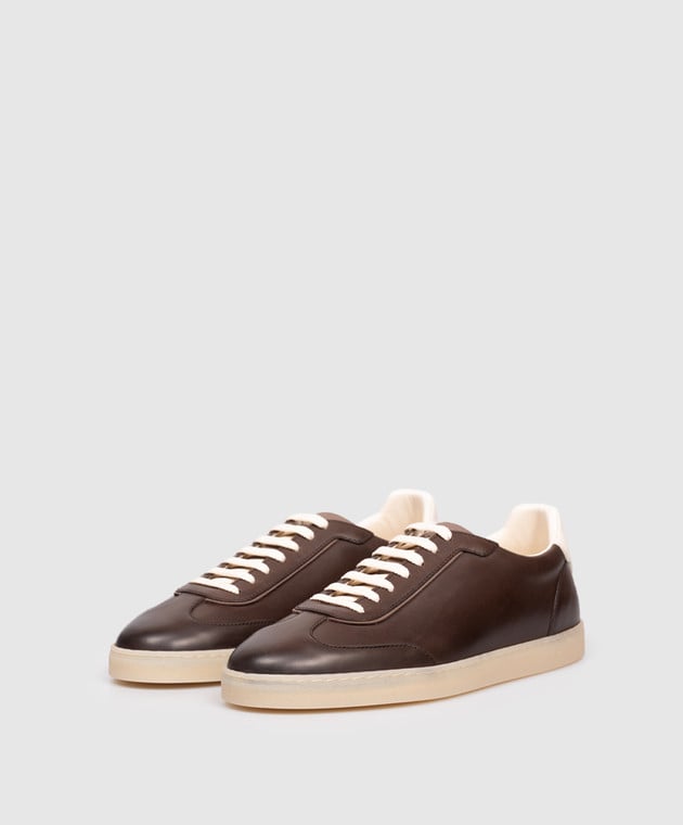 Коричневые кожаные кроссовки с логотипом