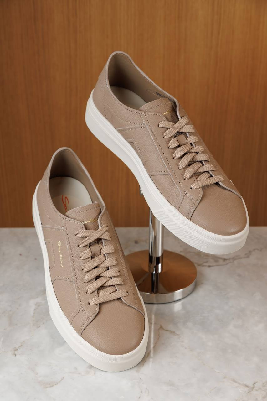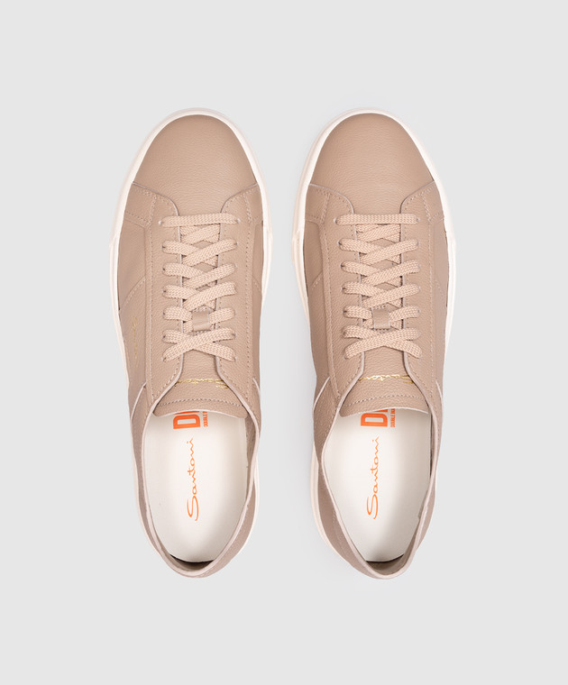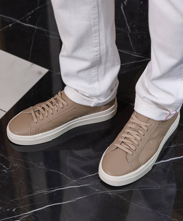 Коричневые кожаные кроссовки с логотипом