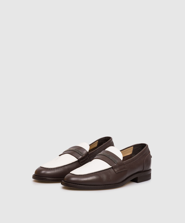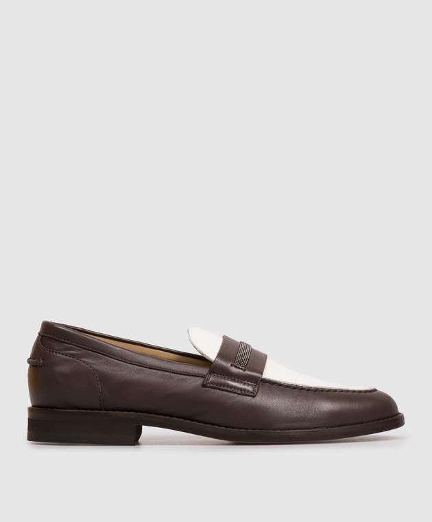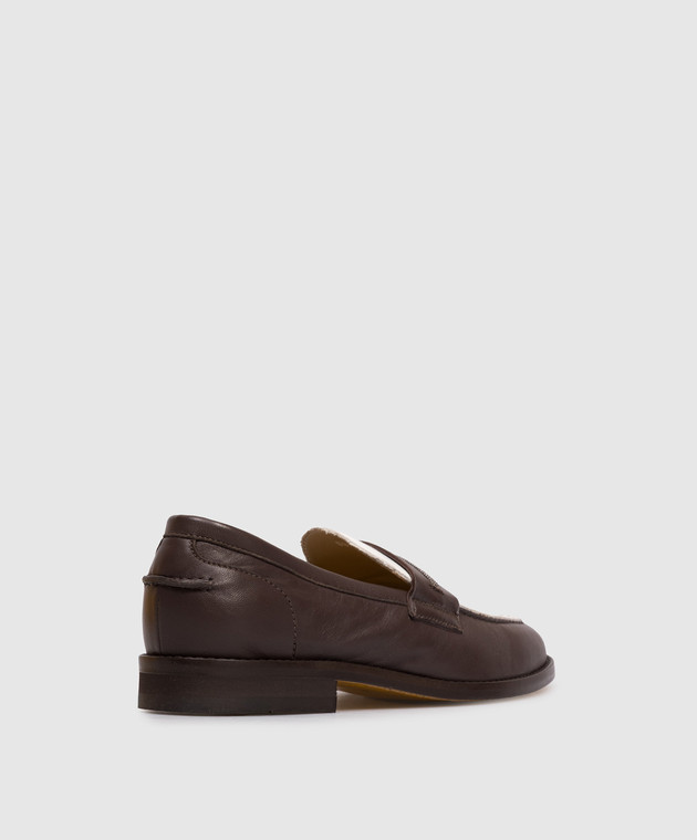 Коричневые кожаные лоферы с цепочкой мониль