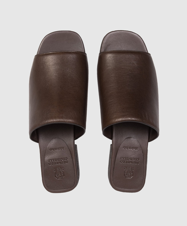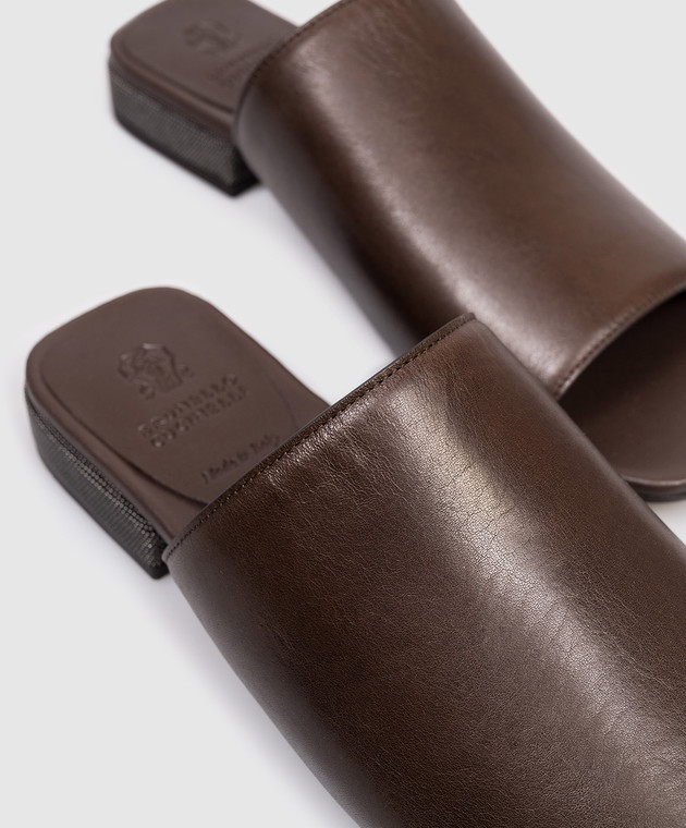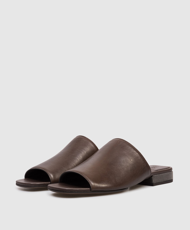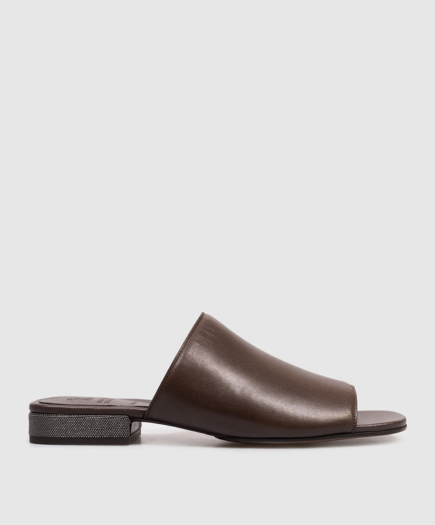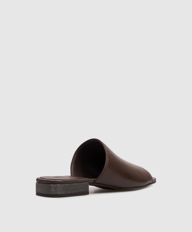 Коричневые кожаные мюли с цепочкой