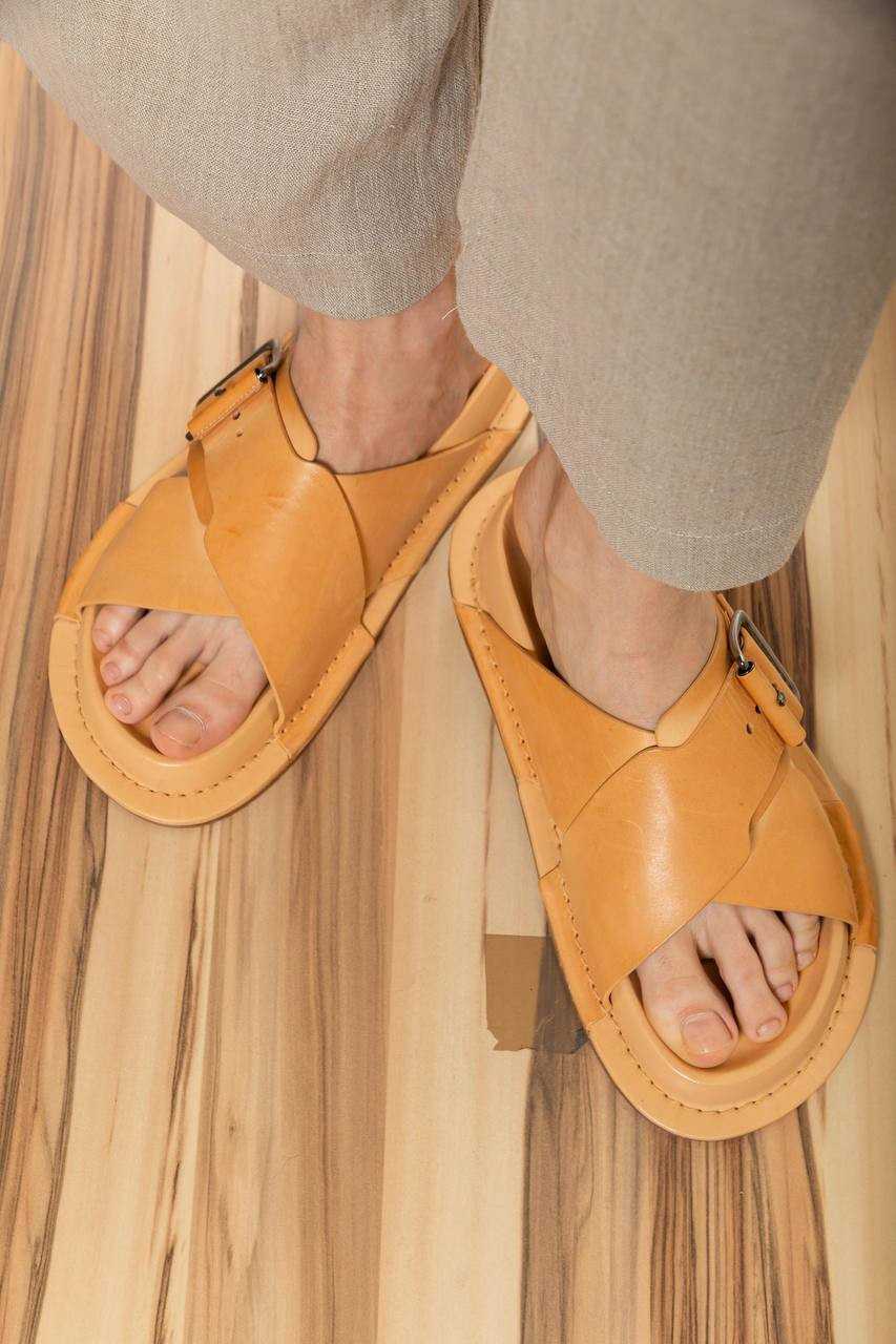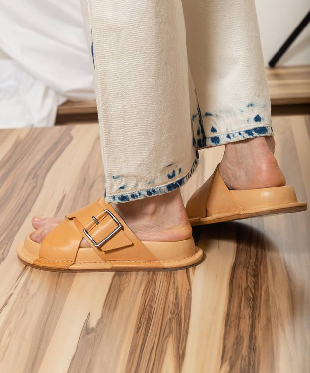 Коричневые кожаные шльопанцы