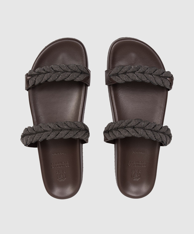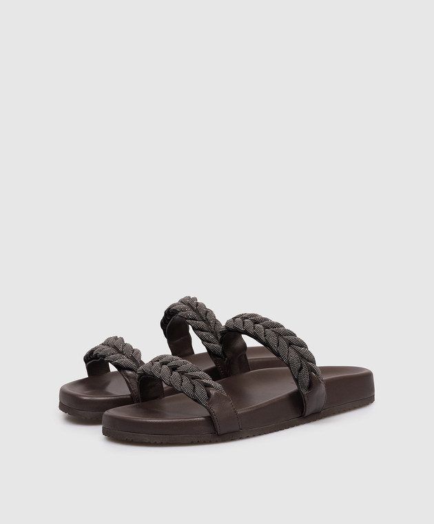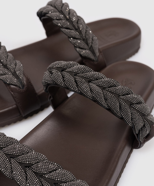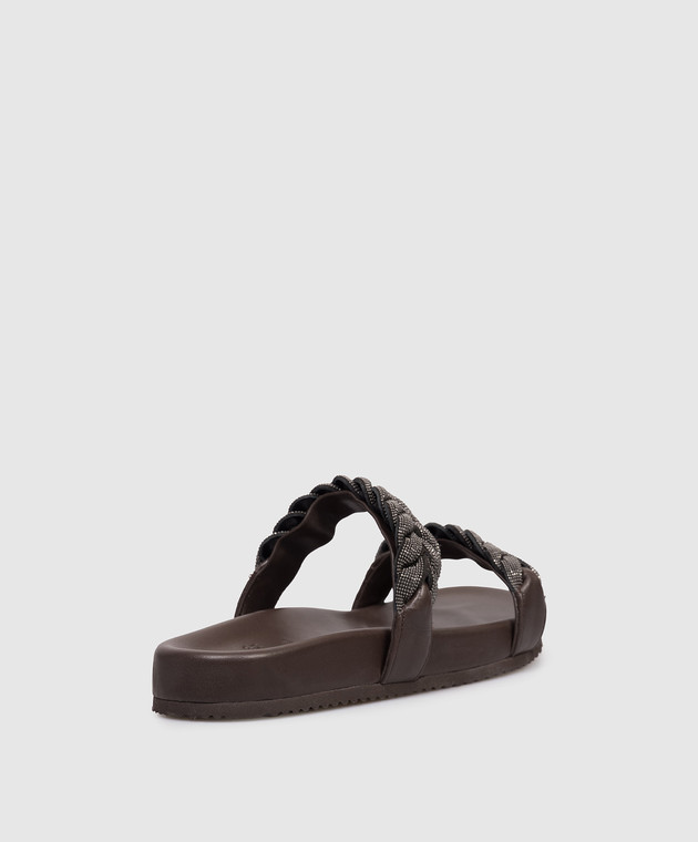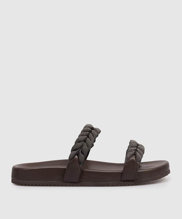 Коричневые кожаные шлепанцы с цепочкой мониль