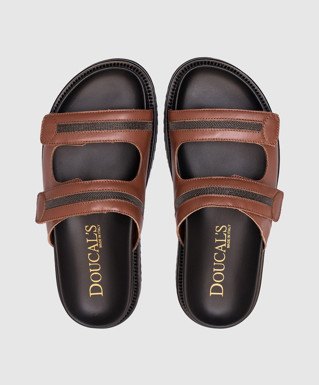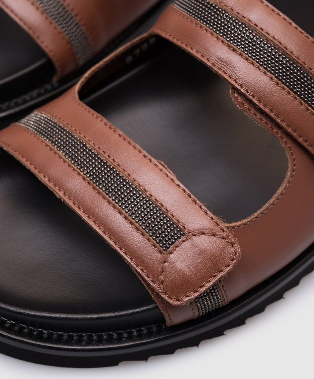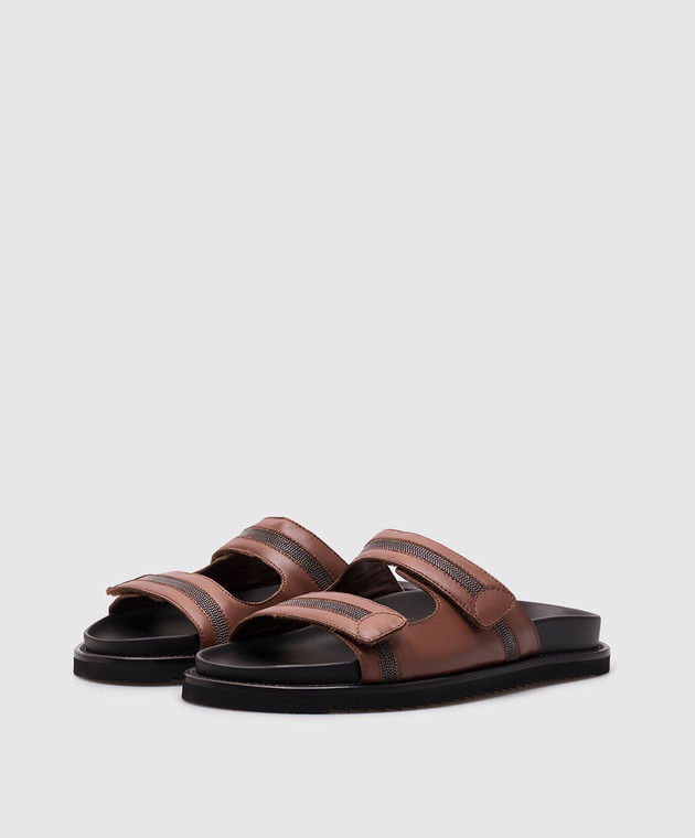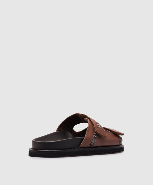 Коричневые кожаные шлепанцы с цепочкой мониль