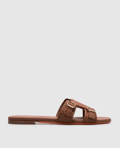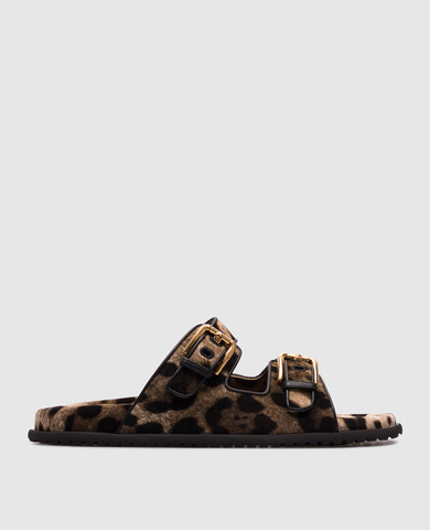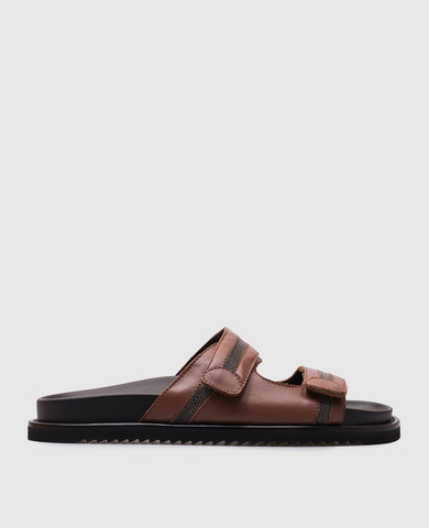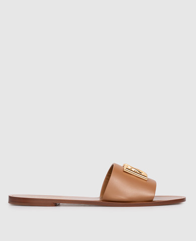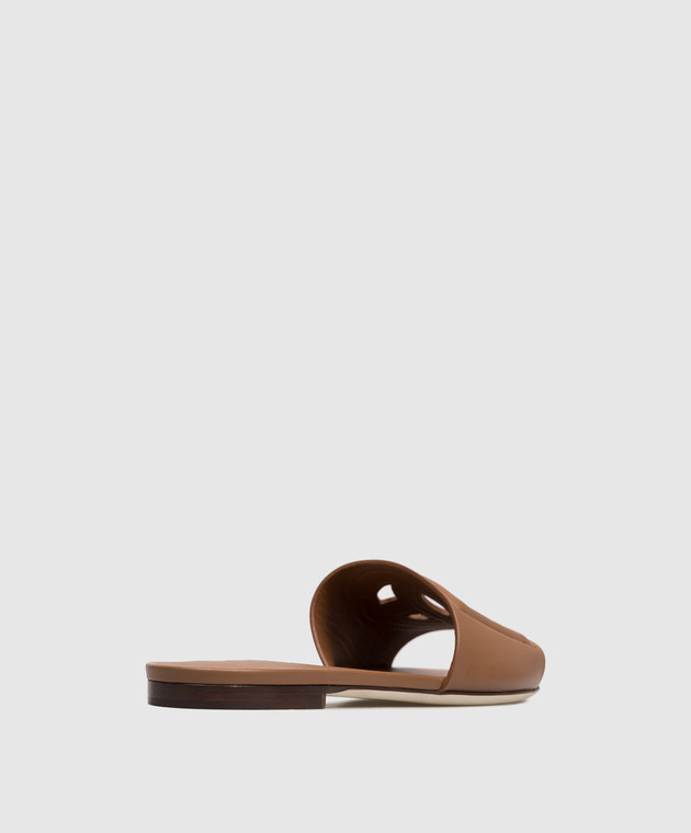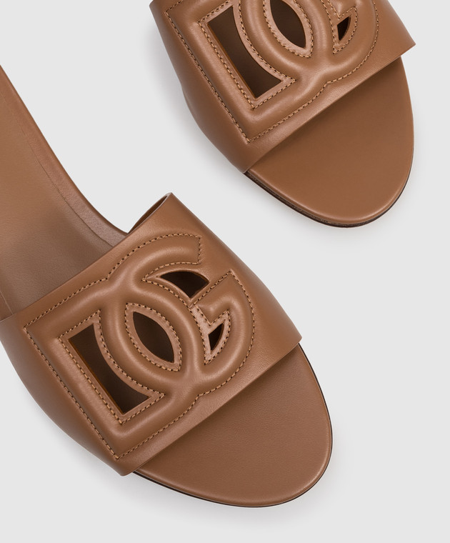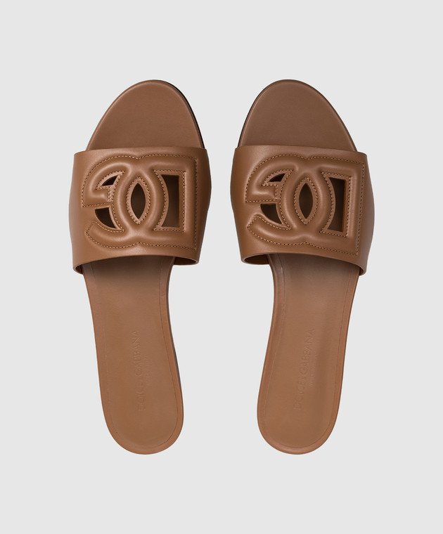 Dolce&Gabbana Коричневые кожаные шлепанцы с логотипом CQ0436AY329