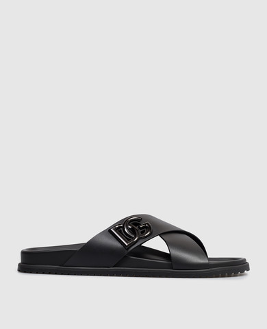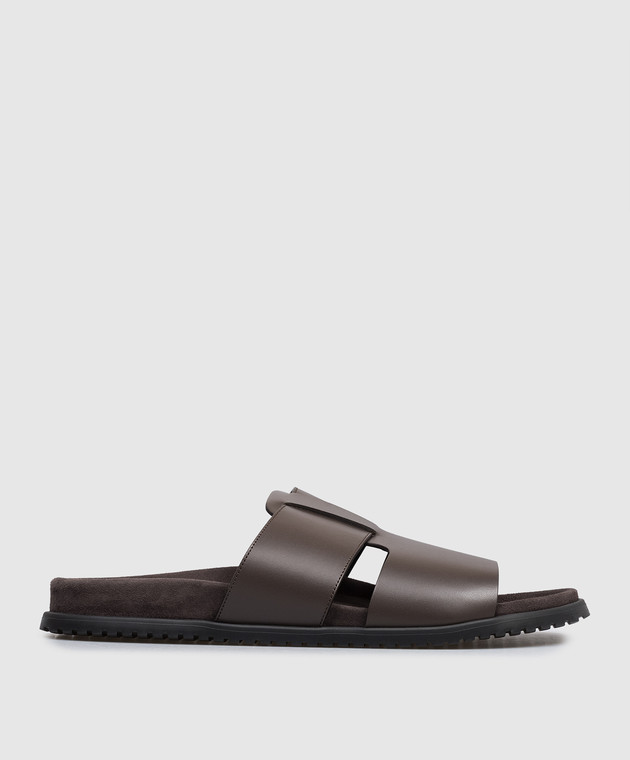 Коричневые кожаные шлепанцы с тиснением логотипа