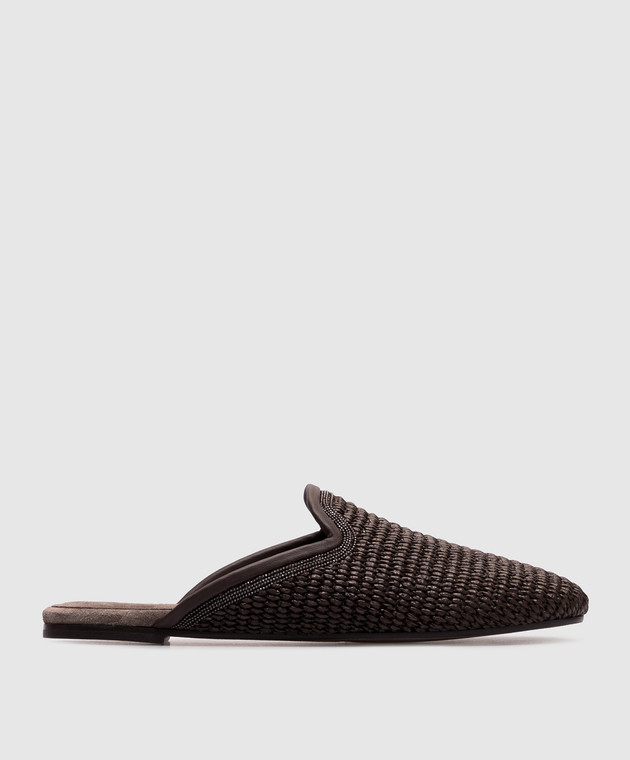 Коричневые мюли из рафии с цепочкой мониль
