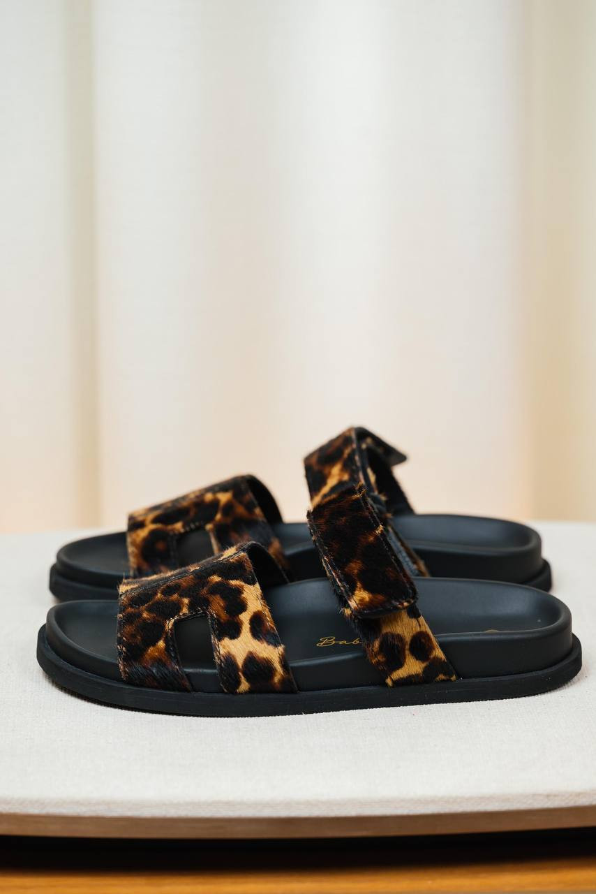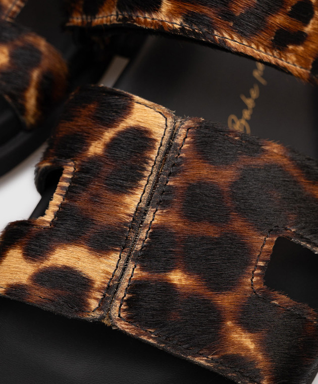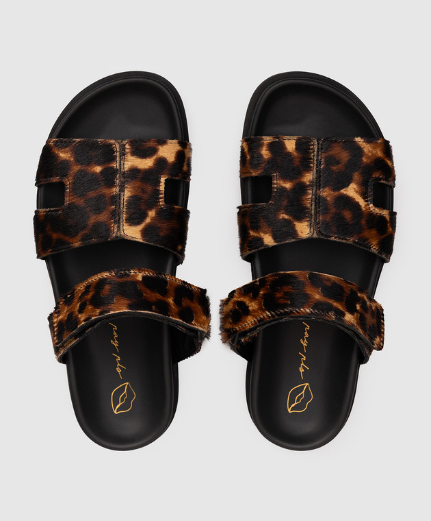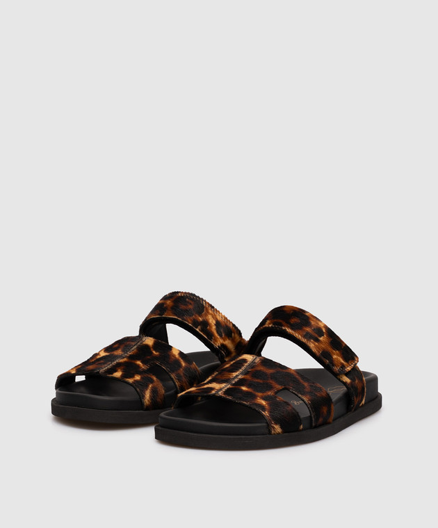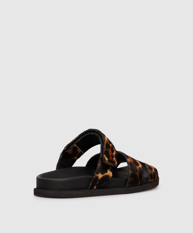 Коричневые шлепки из меха пони в анималистичный принт