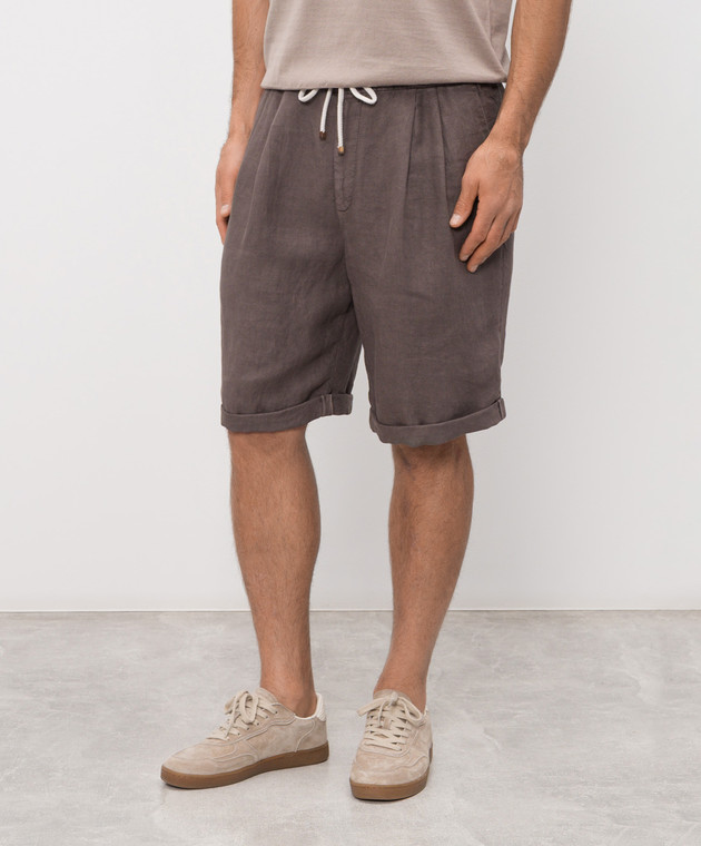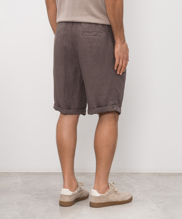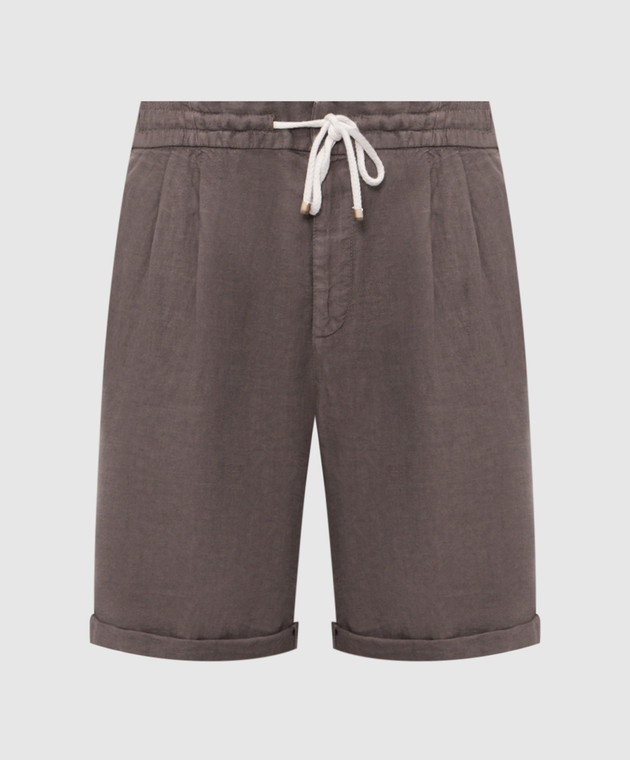 Коричневые шорты из льна с отворотами