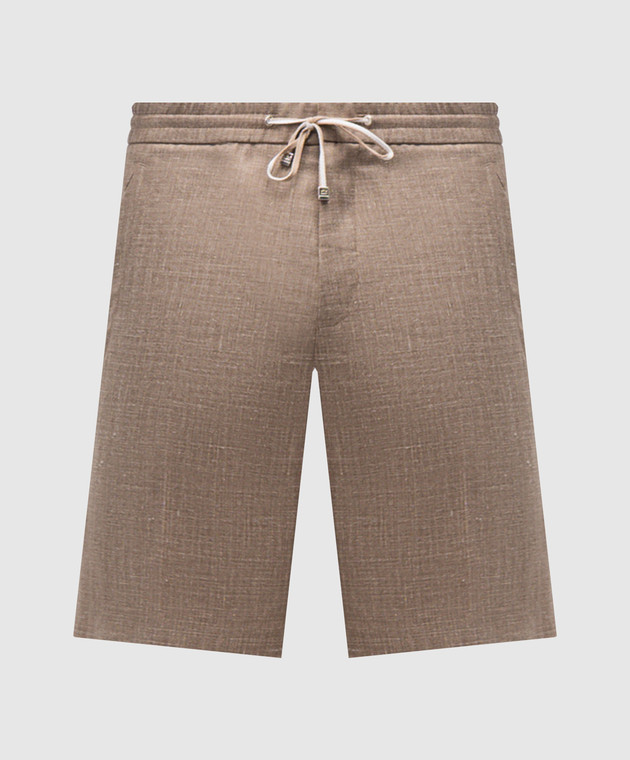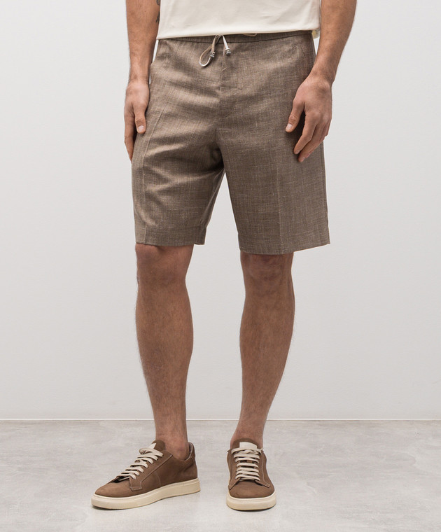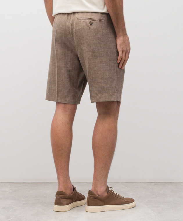 Коричневые шорты из шерсти, шелка и льна в узор