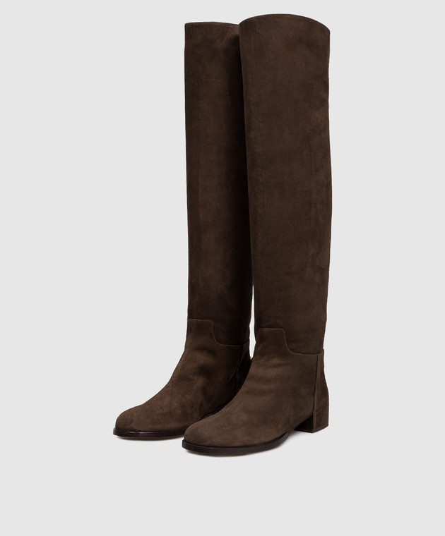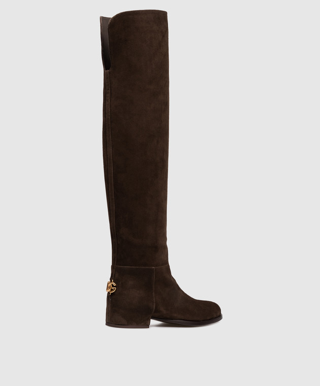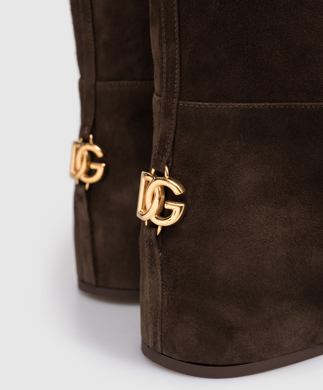 Коричневые замшевые ботфорты с монограммой логотипа DG