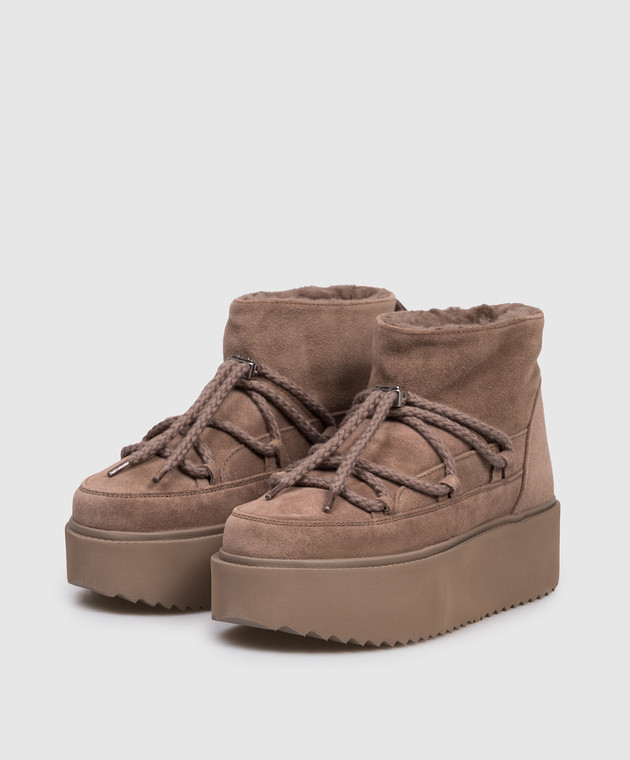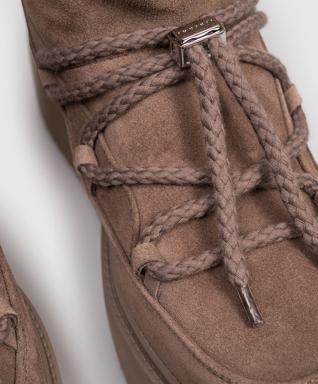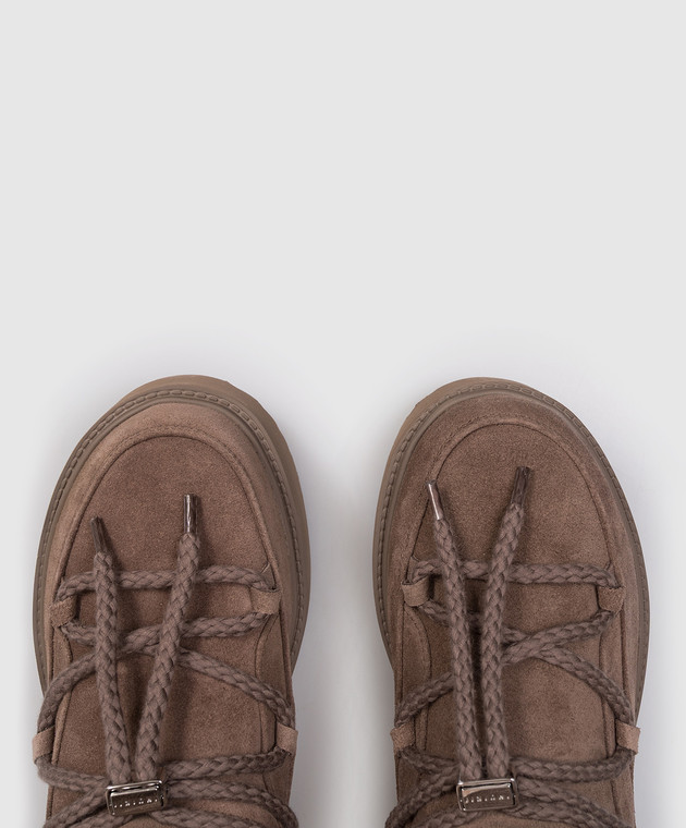 Коричневые замшевые ботинки на меху с вышивкой логотипа
