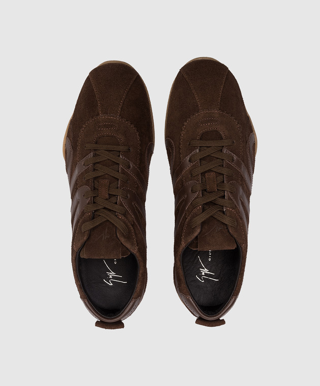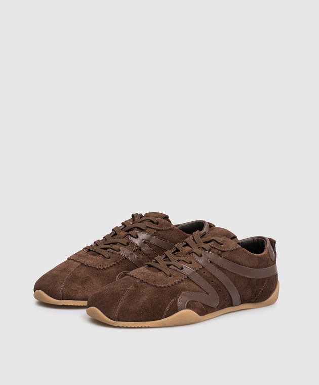Коричневые замшевые кроссовки с логотиопм