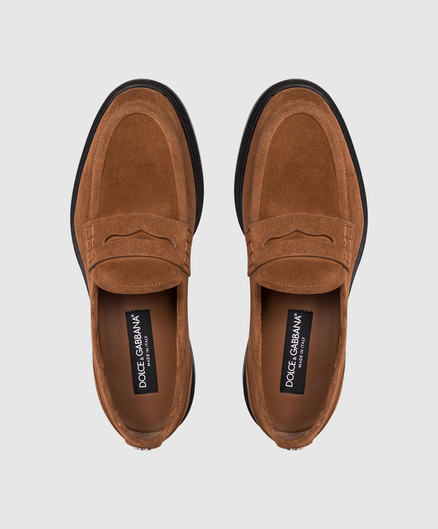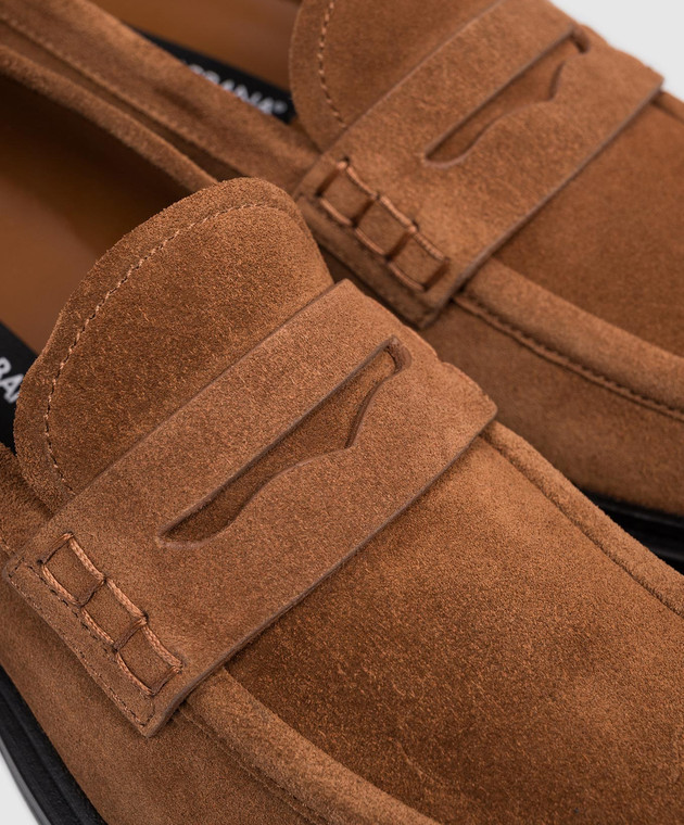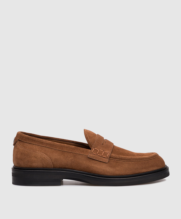 Коричневые замшевые лоферы с монограммой логотипа
