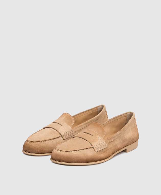 Коричневые замшевые лоферы с монограммой логотипа