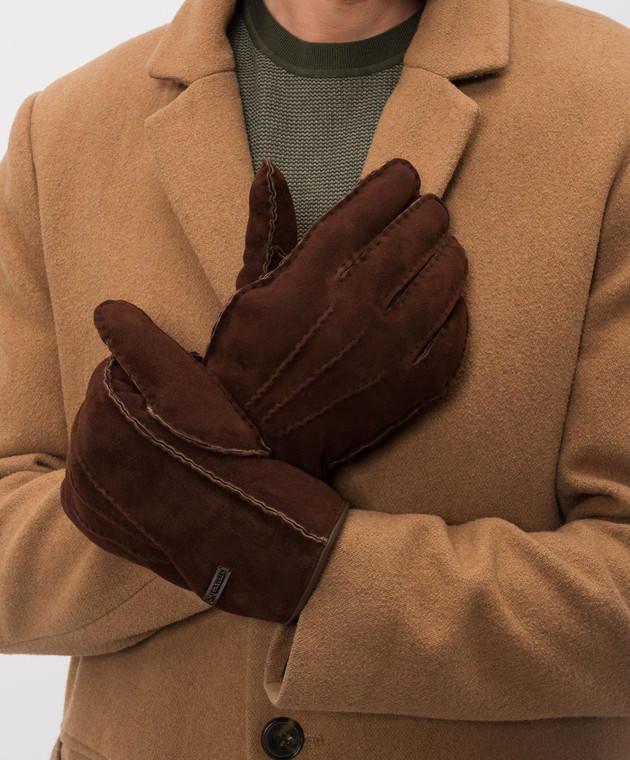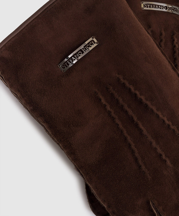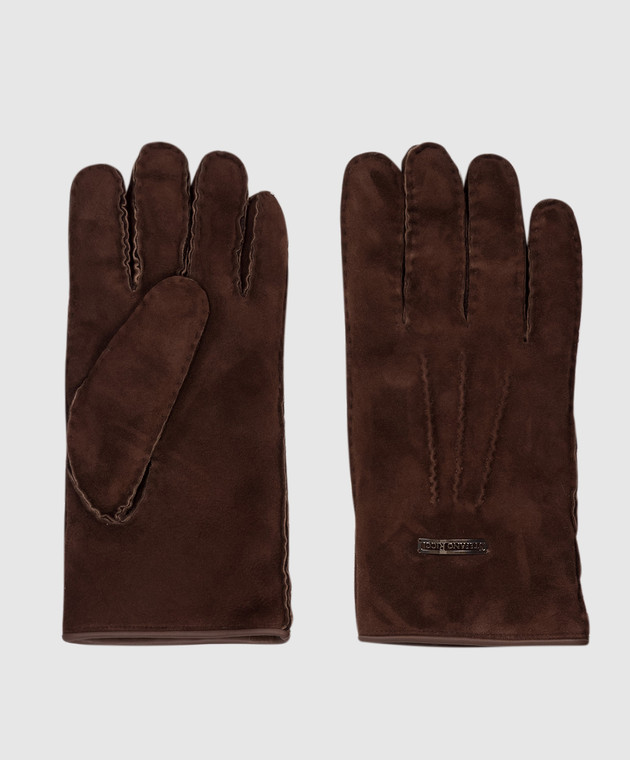 Коричневые замшевые перчатки с нашивкой логотипа