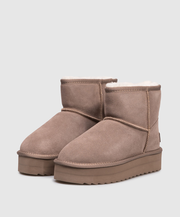 Коричневые замшевые сапоги на меховой платформе