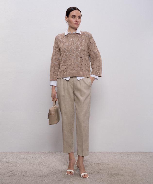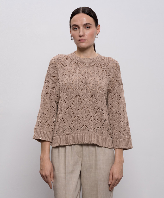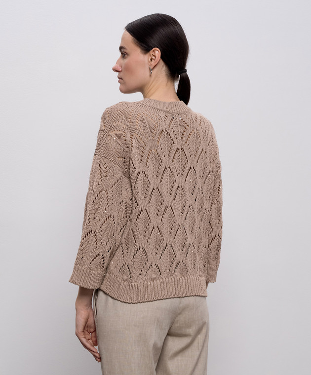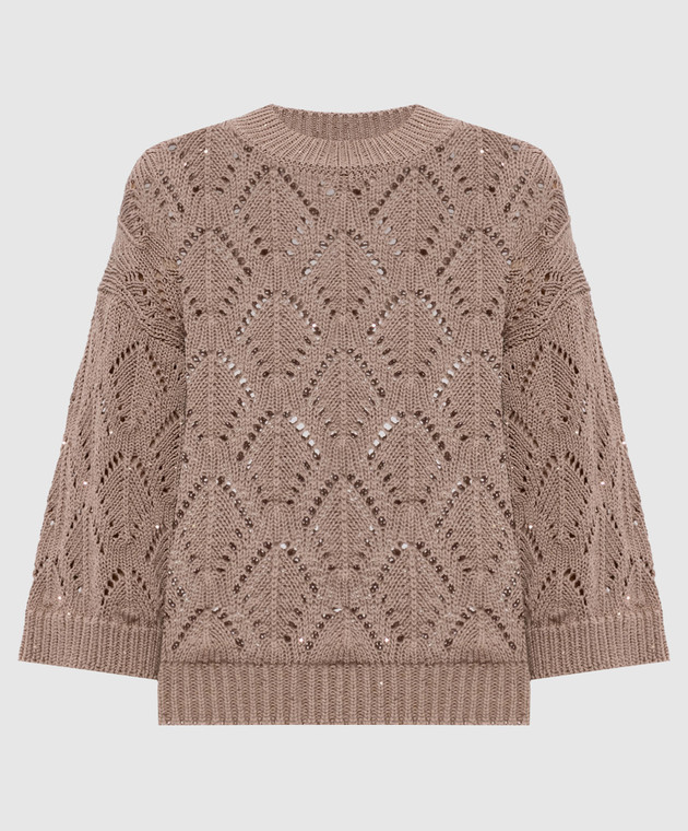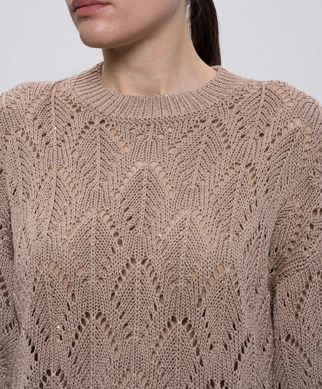Коричневый ажурный джемпер с пайетками
