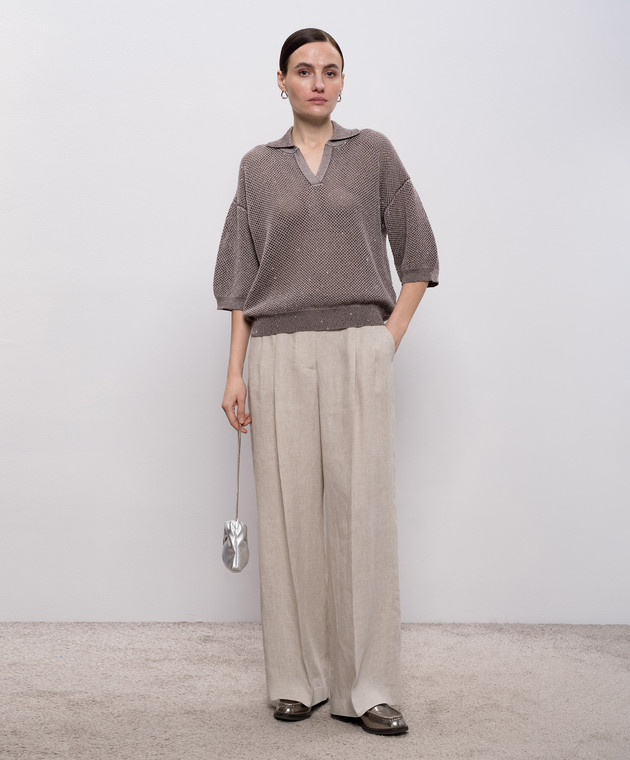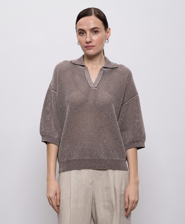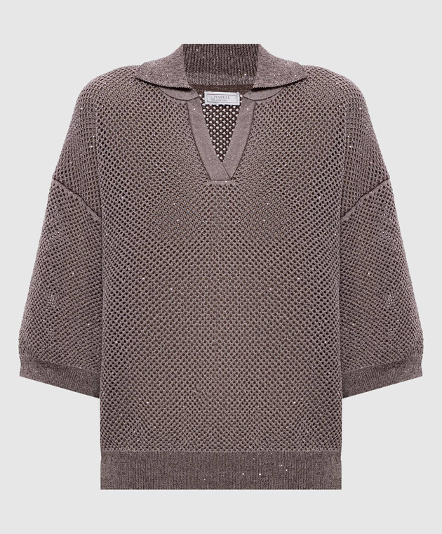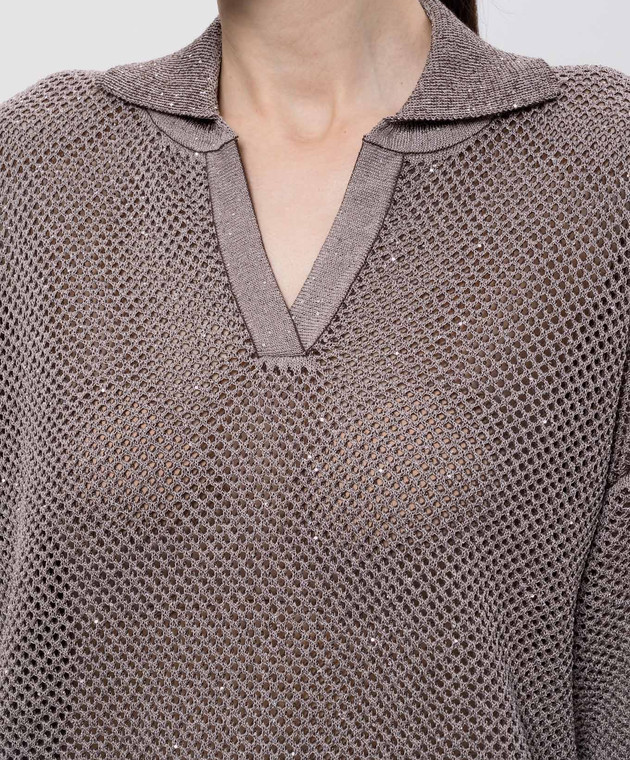Коричневый ажурный пуловер с пайетками