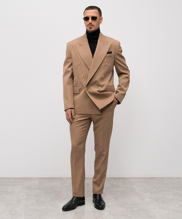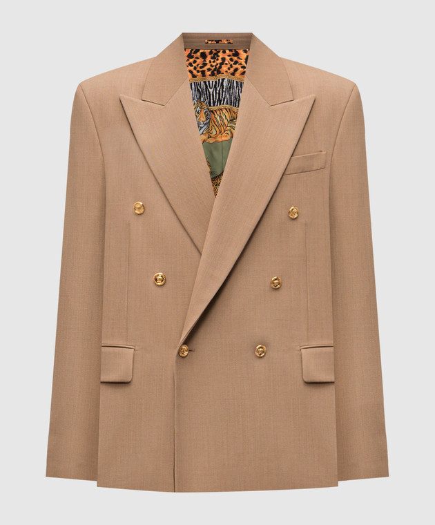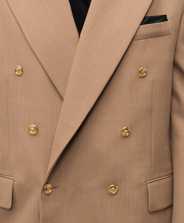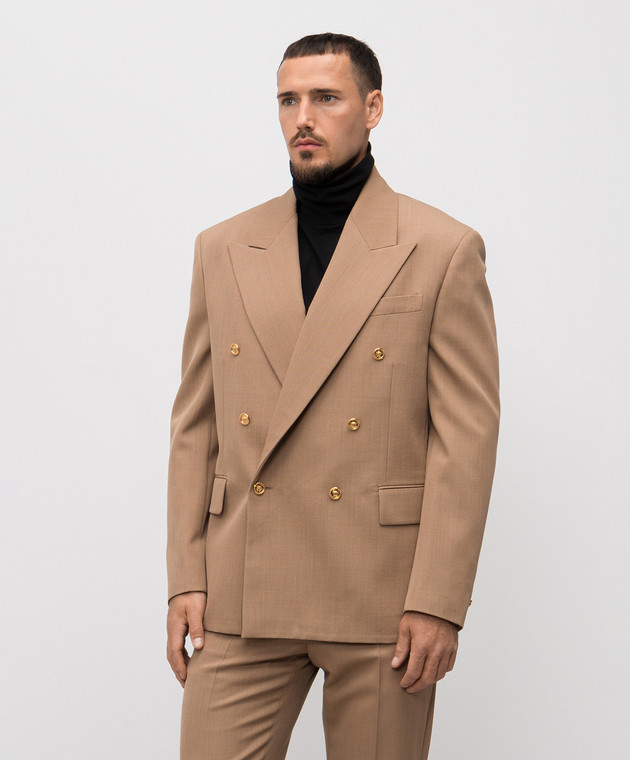 Коричневый двубортный пиджак из шерсти