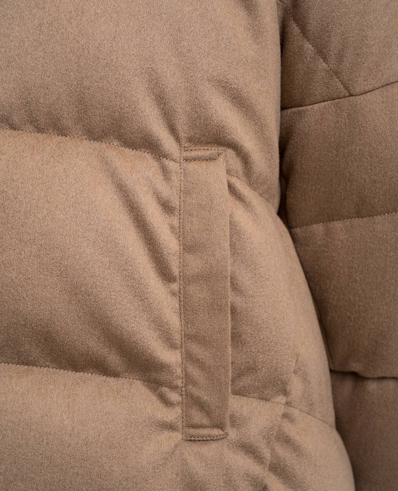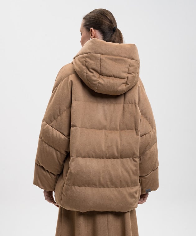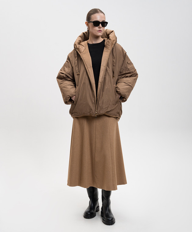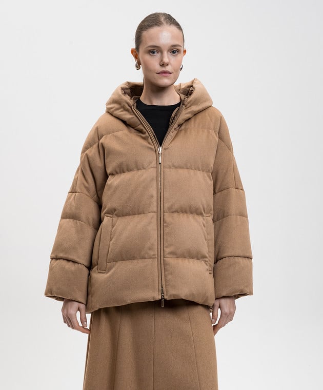 Коричневый двухсторонний пуховик с шерстью верблюда