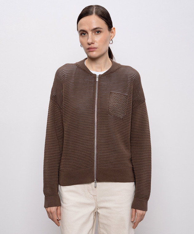 Коричневый кардиган с цепочкой мониль