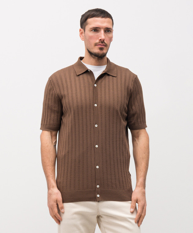 Коричневый кардиган с шелком с коротким рукавом