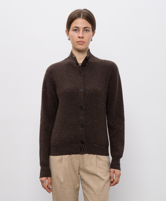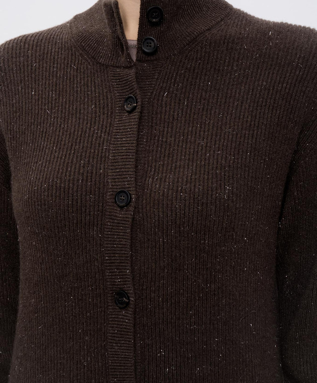 Коричневый кардиган с шерстью, шелком и кашемиром