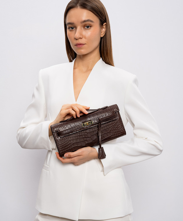 Коричневый клатч из кожи крокодила