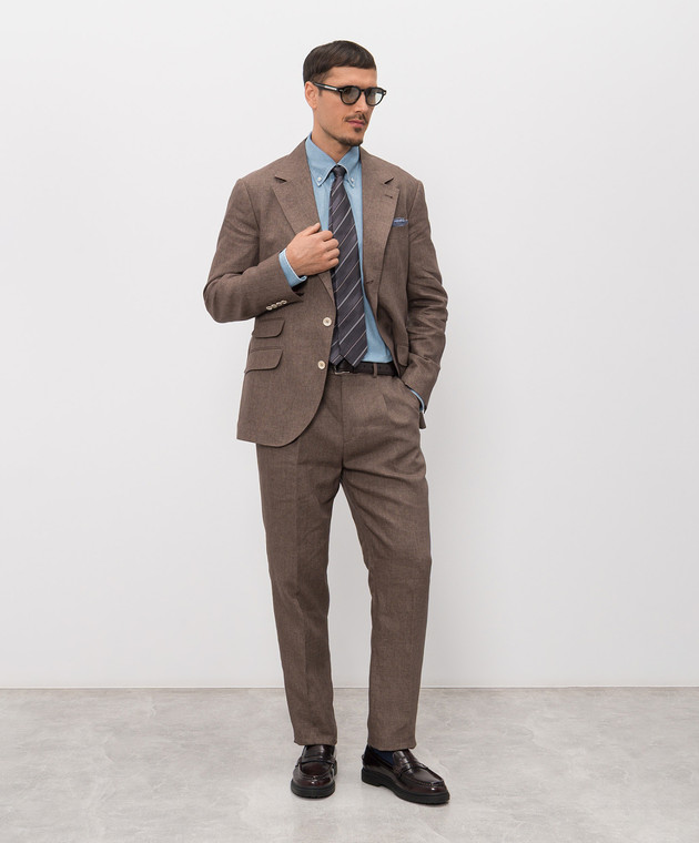 Коричневый костюм из льна
