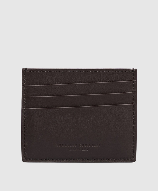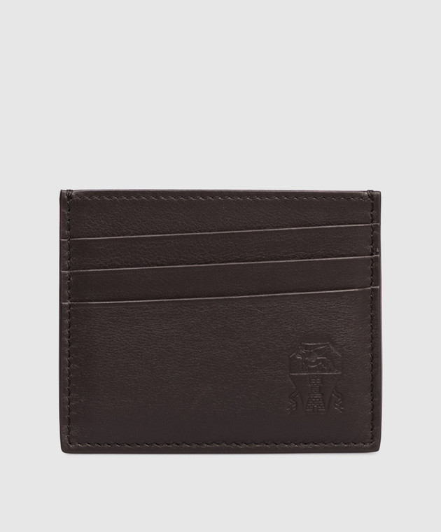 Коричневый кожаный картхолдер с тиснением логотипа