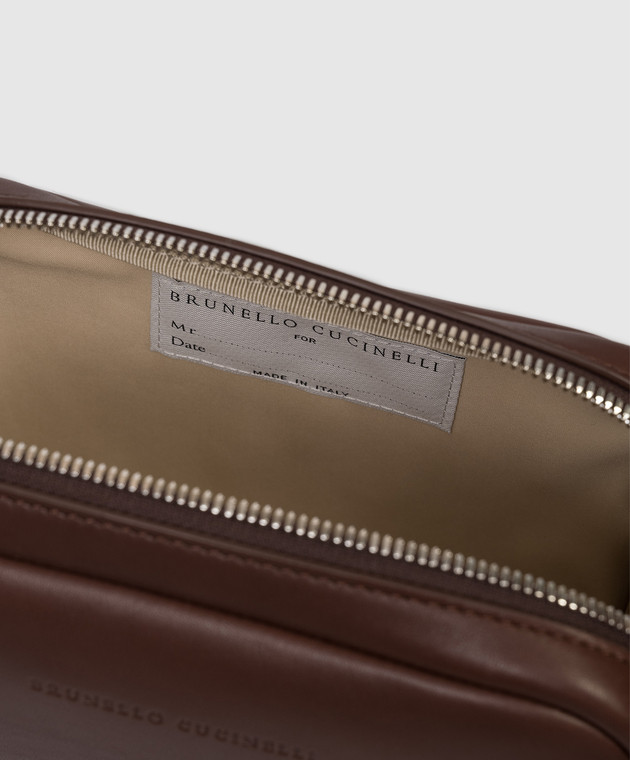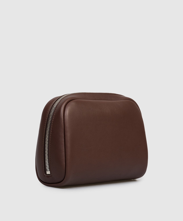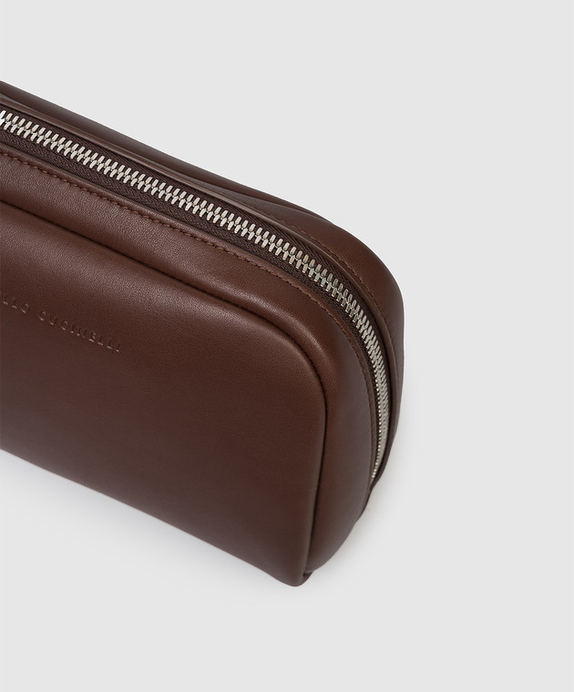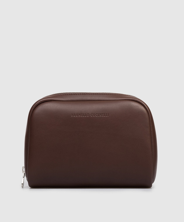 Коричневый кожаный несесер с тиснением логотипа